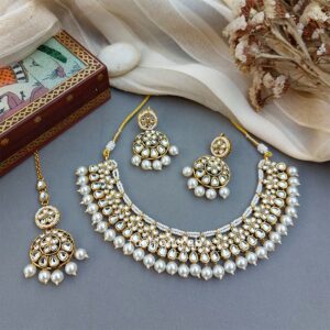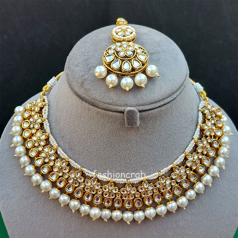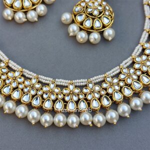 A pair of Traditional Anupama Kundan Necklace – White Set for a Saree.