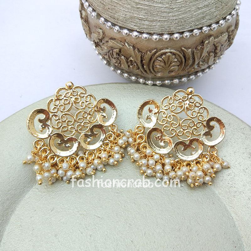 It is the beautiful Big Golden Designer Stud Earring for Girls and Women. These women earrings are very light in weight and best of quality. It is made up of alloy metal and pearl. Wear this golden ear studs with matching Kurti, Palazzo and western attire to get a simple and beautiful look. These stud earrings are available at a pocket-friendly price at Fashioncrab. The size of these stud earrings is 2.5cm.