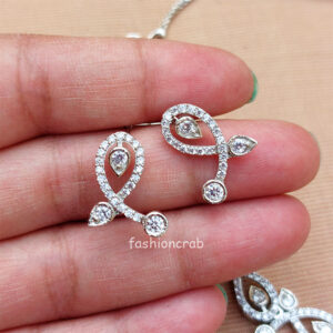 A pair of Silver Tone Designer CZ Necklace Set for a Wedding.