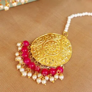A pair of Traditional Dark Pink Beautiful Punjabi Jhumka with Tikka for Wedding.
