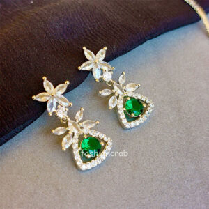 A pair of Silver Tone Designer Green Stone Zirconia Jewellery Set for a Wedding.