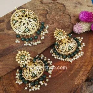 Green Traditional Jadau Jhumka with Maang Tikka