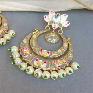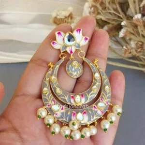 Look stunning in your evening wear with these Grey Lotus Design Meenakari Earrings from Fashioncrab. Made from brass, these drops give you an eye-catching look. Golden Drop Chandbali Pearl Earring are very much in high trend give you a real ethnic as well as royal look.