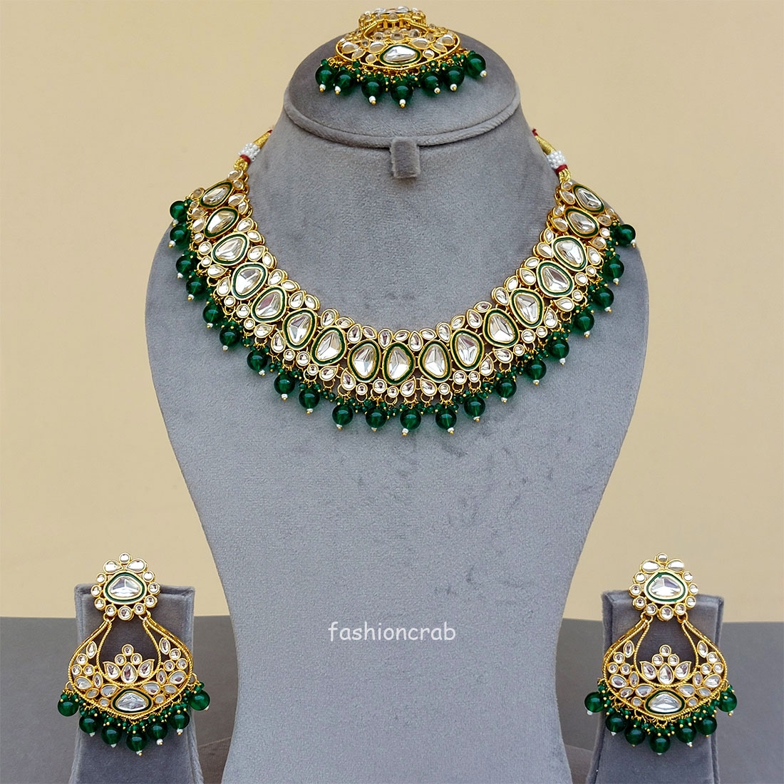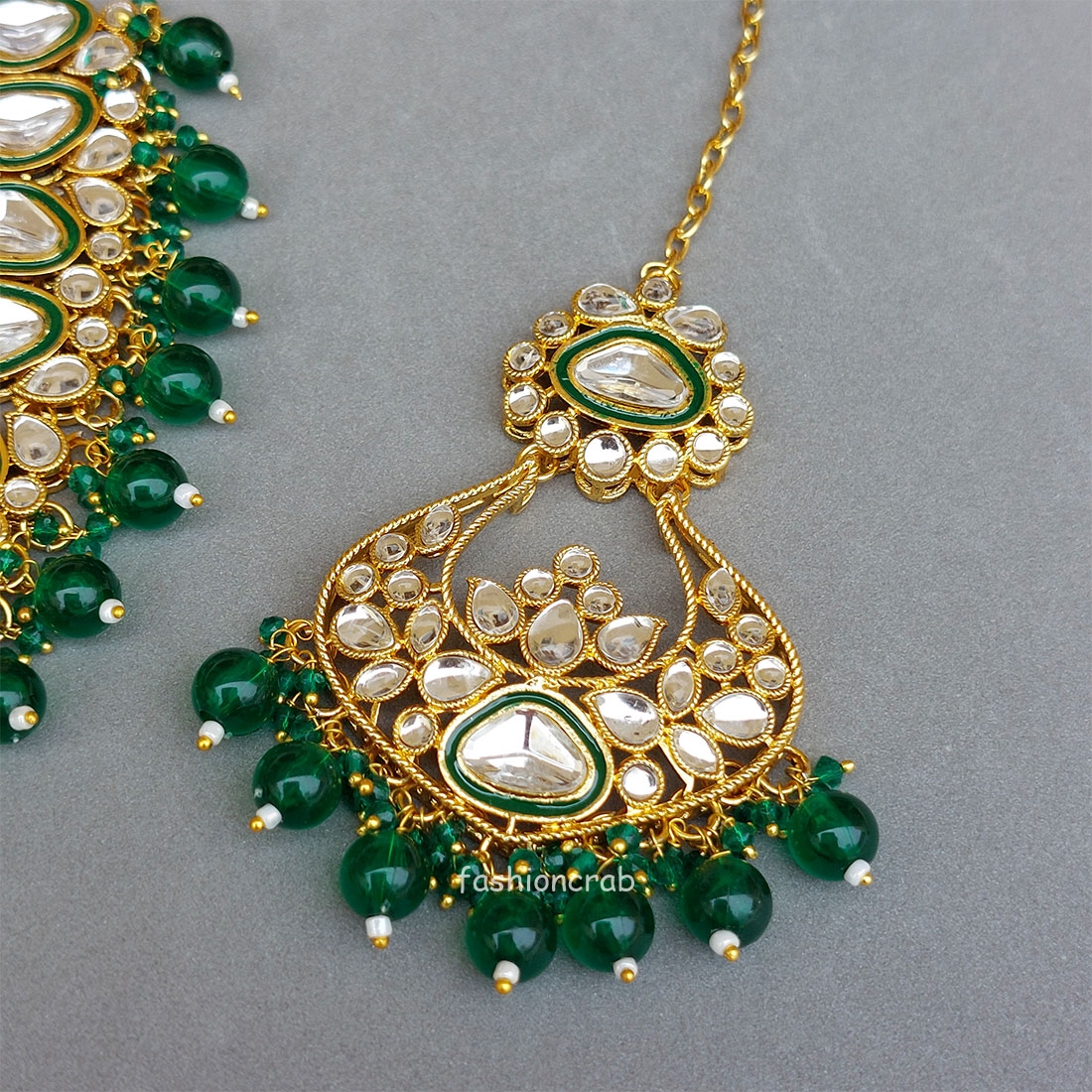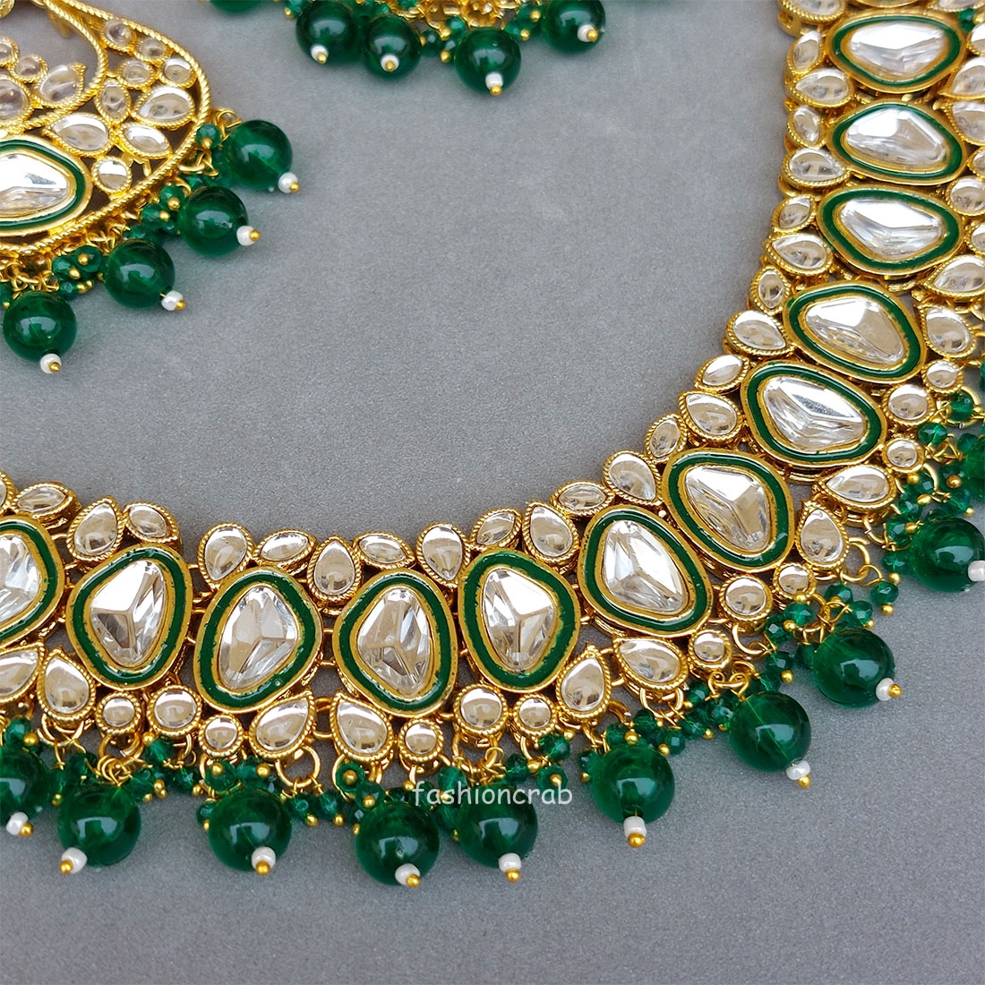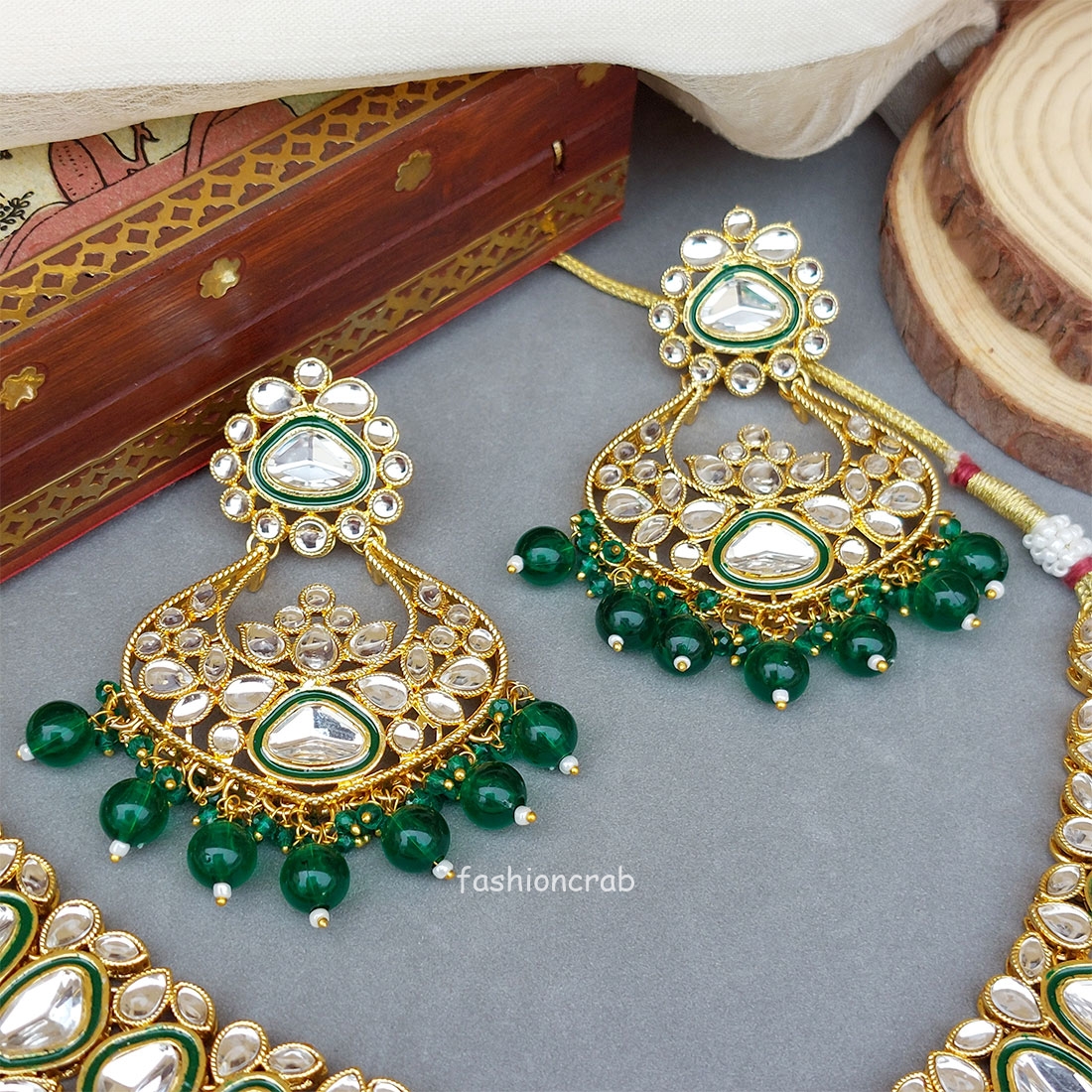 A pair of Traditional Kundan Bridal Necklace Set for Wedding – Green.