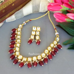 Kundan Necklace Set with Maroon Pearl