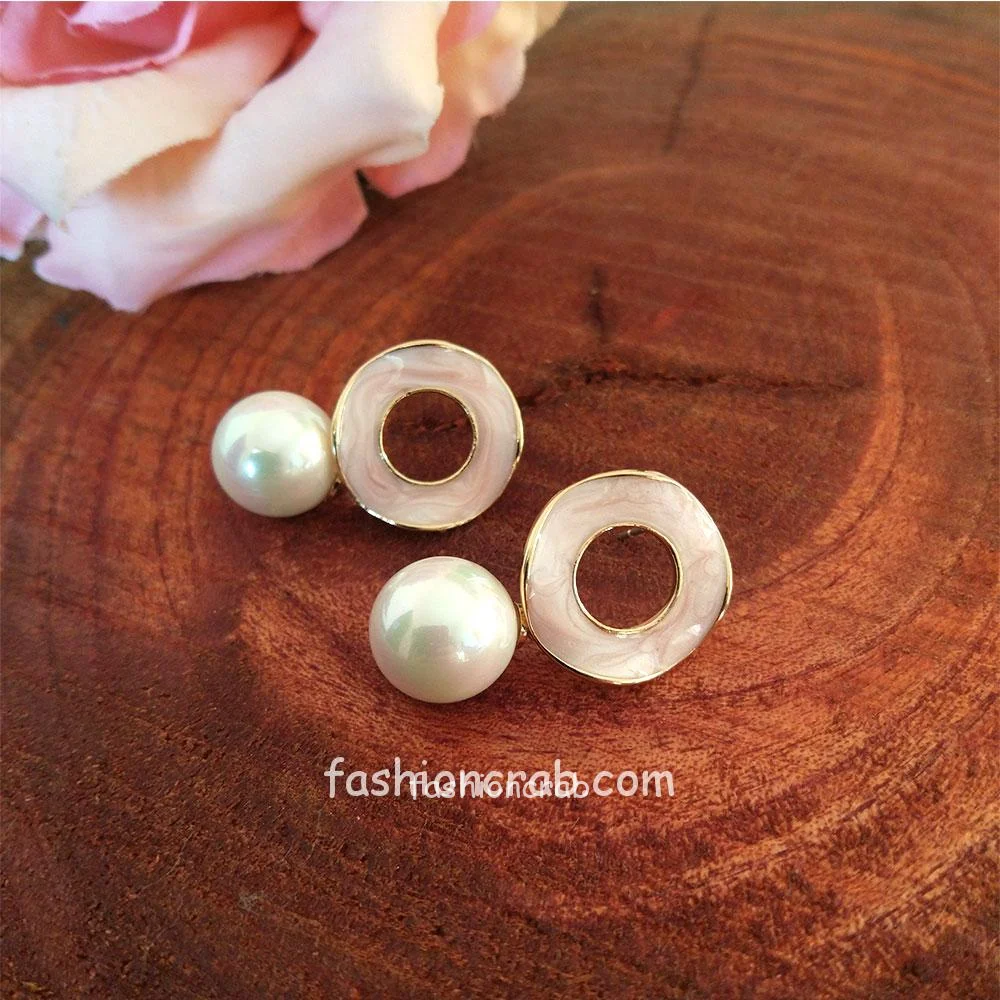 A pair of Beautiful Light Pink Pearl Earrings for Party for College.