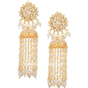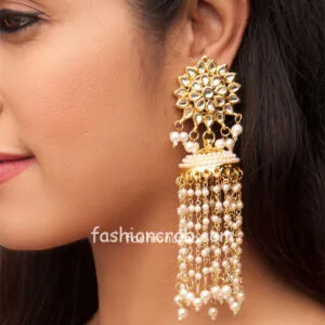 Look beautiful in the evening wearing these golden colored women drop earrings from Fashioncrab. Made from copper, these danglers gives an eye-catching look. This Long Jhallar Women Earring is very much in high trend gives you a real ethnic as well as royal look.These drop earrings will give an elegant touch to your look and makes you stand out in the crowd.