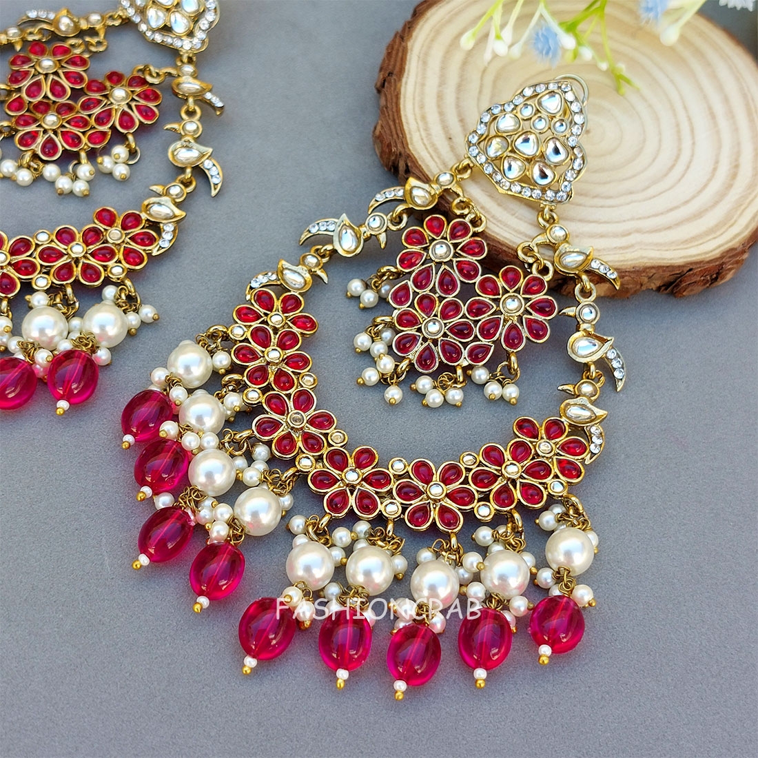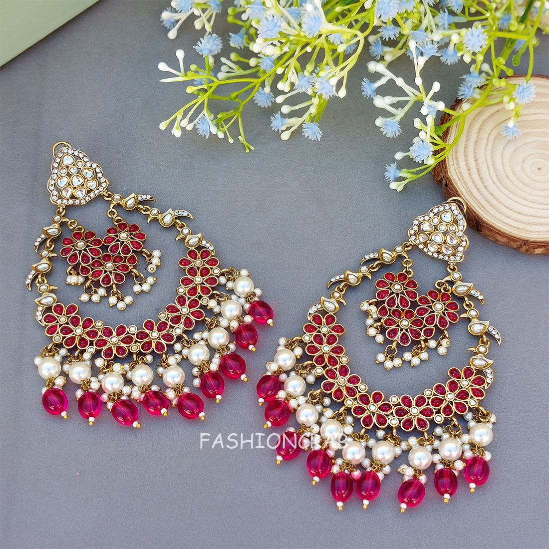 3 reviews for Manasvi Chandbali Earrings – Pink