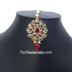 This Lightweight Designer Maroon Jhumka with Maang Tikka for Wedding is very much in high trend gives you a real ethnic as well as royal look. Gold-toned Polki drop earrings have a floral base with stone-studded detail. This earring is designed for all age groups from college going girl to housewife. This is a handcrafted maang tikka set with good quality stones and Pearl drops. For more, check out our latest fashion and Meenakari jewellery and necklace set.