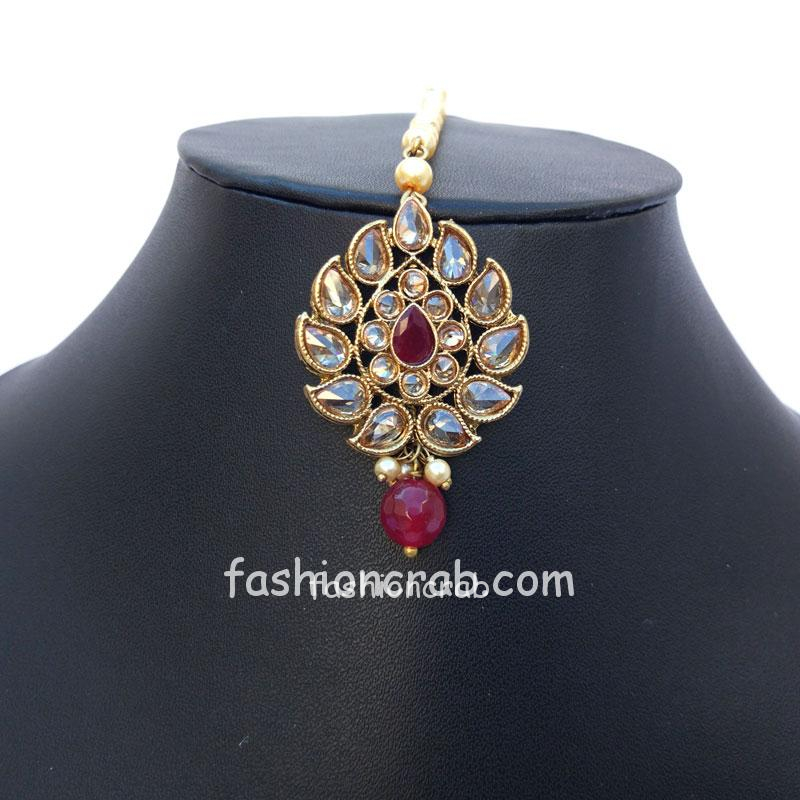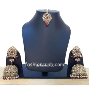 8 reviews for Maroon Jhumka with Maang Tikka for Wedding