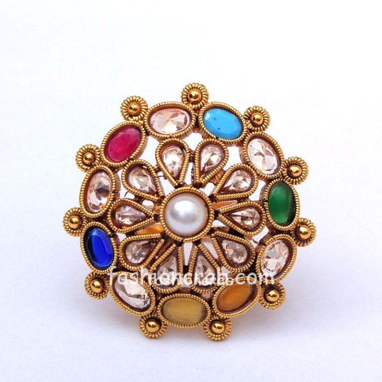 Accessorise your ethnic look by wearing this Multicolor Adjustable Polki Ring for Women from Fashioncrab to give a classy touch to your attire.Brass has been used in the making of this Multicolor golden beauty, which will sit pretty on your fingers and glisten away. Wear it with an Anarkali kurta, Salwar Suit, Saree and heels to match your elegant persona. This golden-toned multicolor adjustable partywear ring has a floral detail with a multi stone-studded which adds to the charm of this gorgeous wedding ring. It can be worn for Engagement and Wedding Parties and can be used as a cocktail ring. One of the best gift for your loved ones. Keep away from Perfumes, Spray and Water. Nickel free and Lead-free as per International Standards that make it very skin friendly.