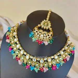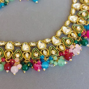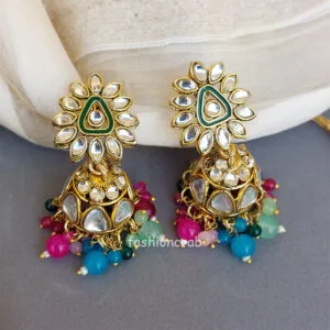 A pair of Traditional Multicolor Kundan Set for a Saree.
