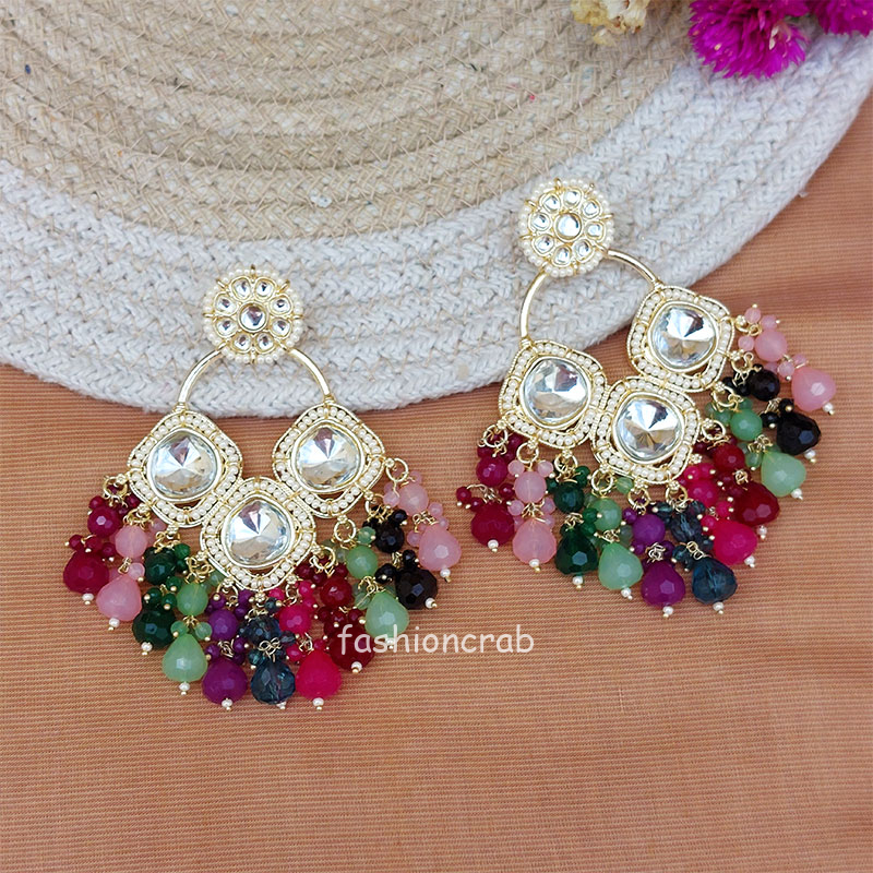 Multicolor Pearl Kundan Chandbali Earrings
