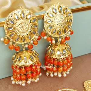 13 reviews for Orange Color Punjabi Tikka Earrings for Wedding