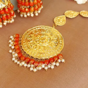 Orange Color Punjabi Tikka Earrings for Wedding