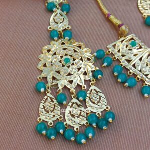 Peacock Blue Color Jadau Jewellery Set