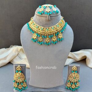 2 reviews for Peacock Blue Color Jadau Jewellery Set