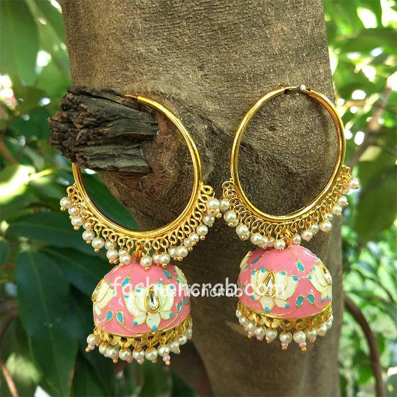 9 reviews for Pink Meenakari Indian Jhumka Earring with Bali