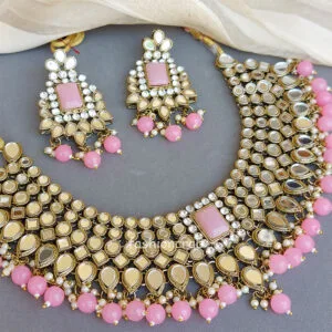7 reviews for Pink Mirror Necklace Set for Lehenga