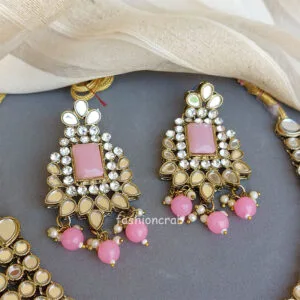 A pair of Traditional Pink Mirror Necklace Set for Lehenga.