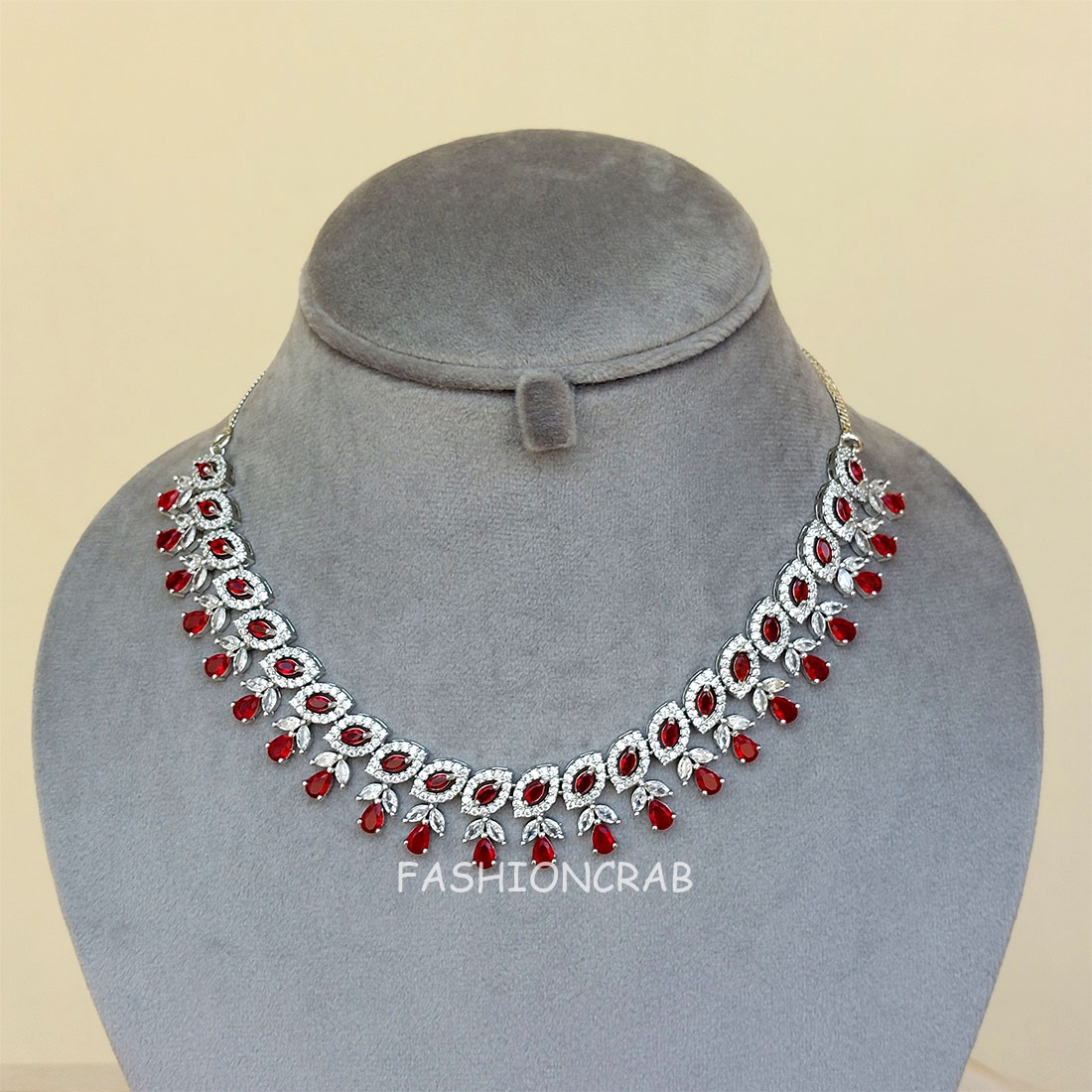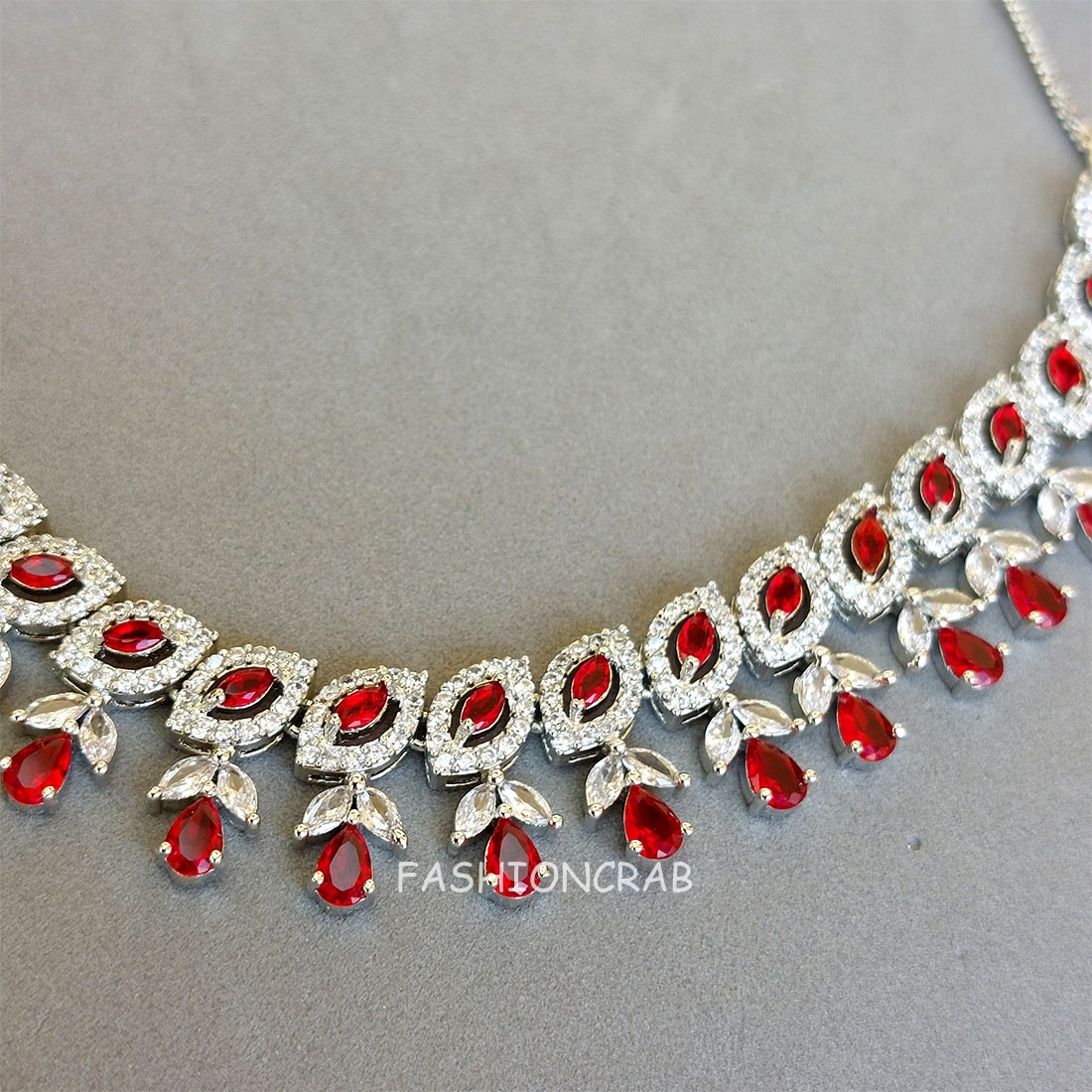 A pair of Silver Tone Red American Diamond Jewellery Set for a Wedding.