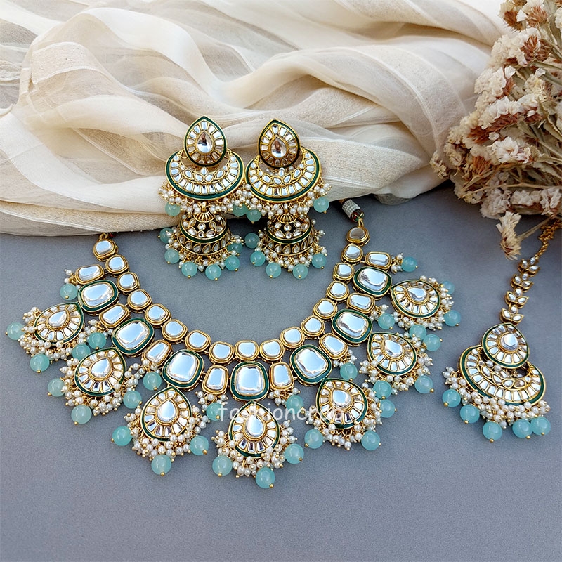 7 reviews for Sea Green Wedding Jewellery Set for Bride