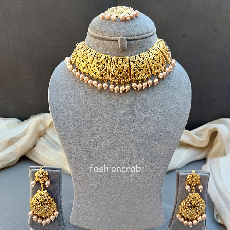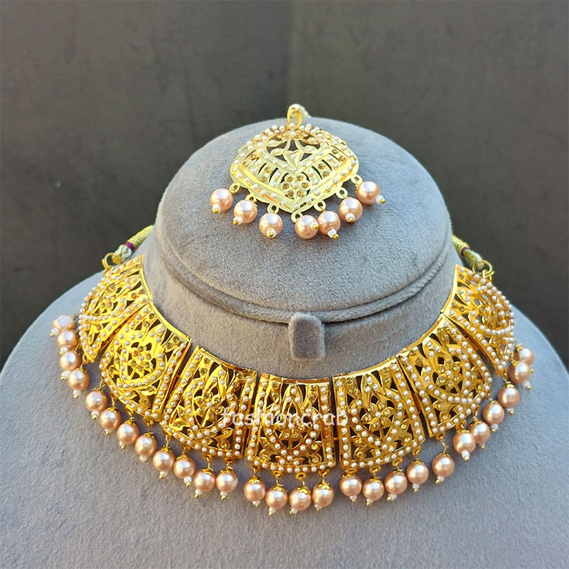 A pair of Champagne Color Pearl Jadau Set for Saree.