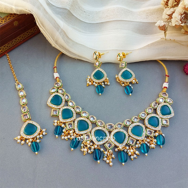 Simran Polki Necklace – Peacock Blue