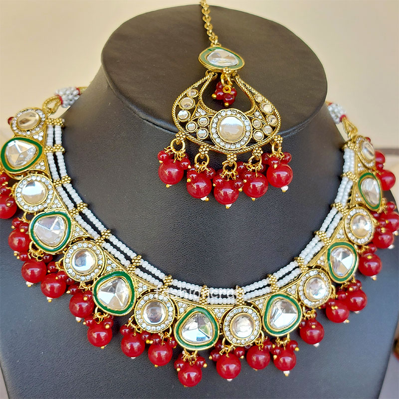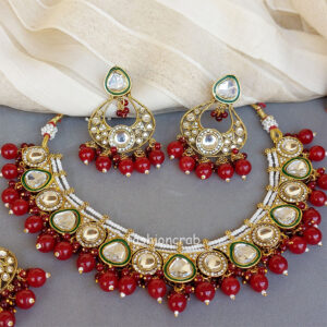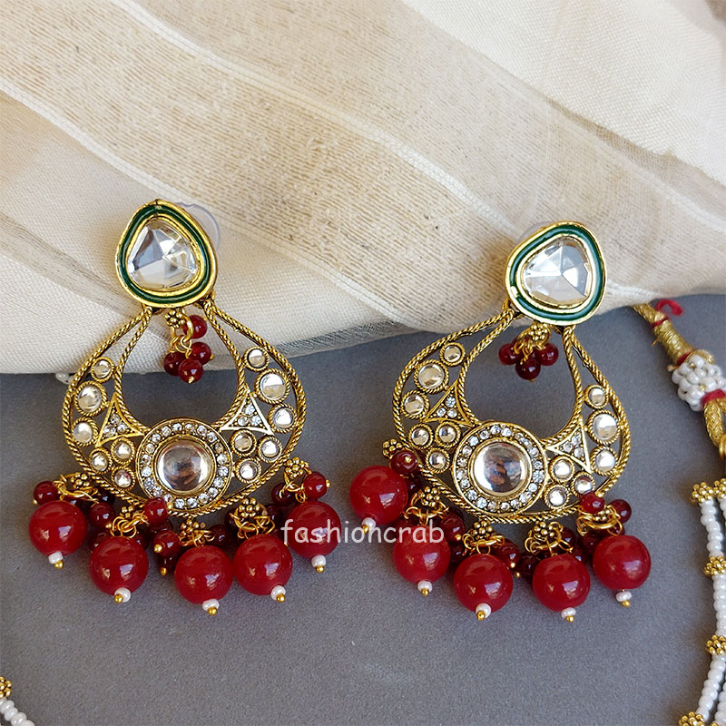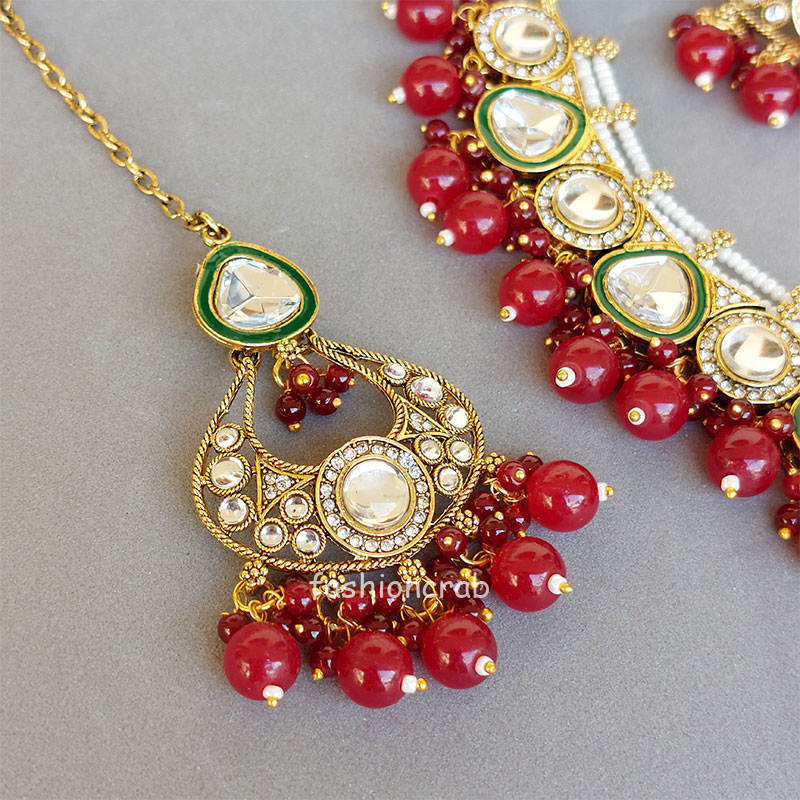 A pair of Traditional Sonam Kundan Jewellery Set – Maroon for a Saree.
