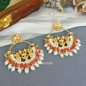 A pair of Lightweight White Pearl Meenakari Earring for Sharara Suit.