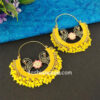 A pair of golden-toned Designer Yellow Earrings for Lehenga has peacock design with flower in the center.