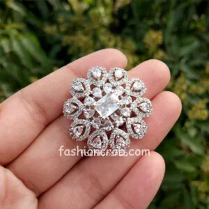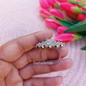 Accessorise your ethnic look by wearing this Cubic Zirconia Designer Adjustable Finger Ring for Reception from Fashioncrab to give a classy touch to your attire. Brass has been used in the making of this silver color beauty, which will sit pretty on your fingers and glisten away.